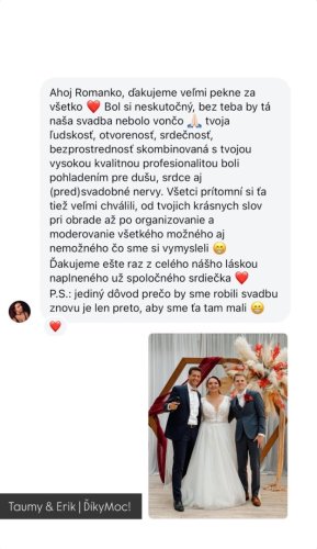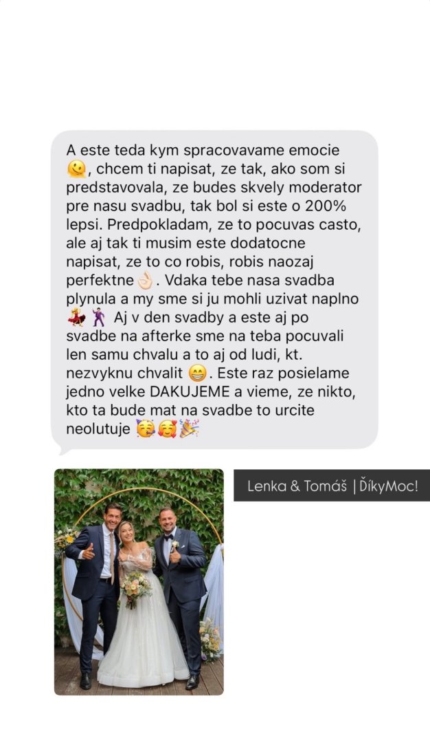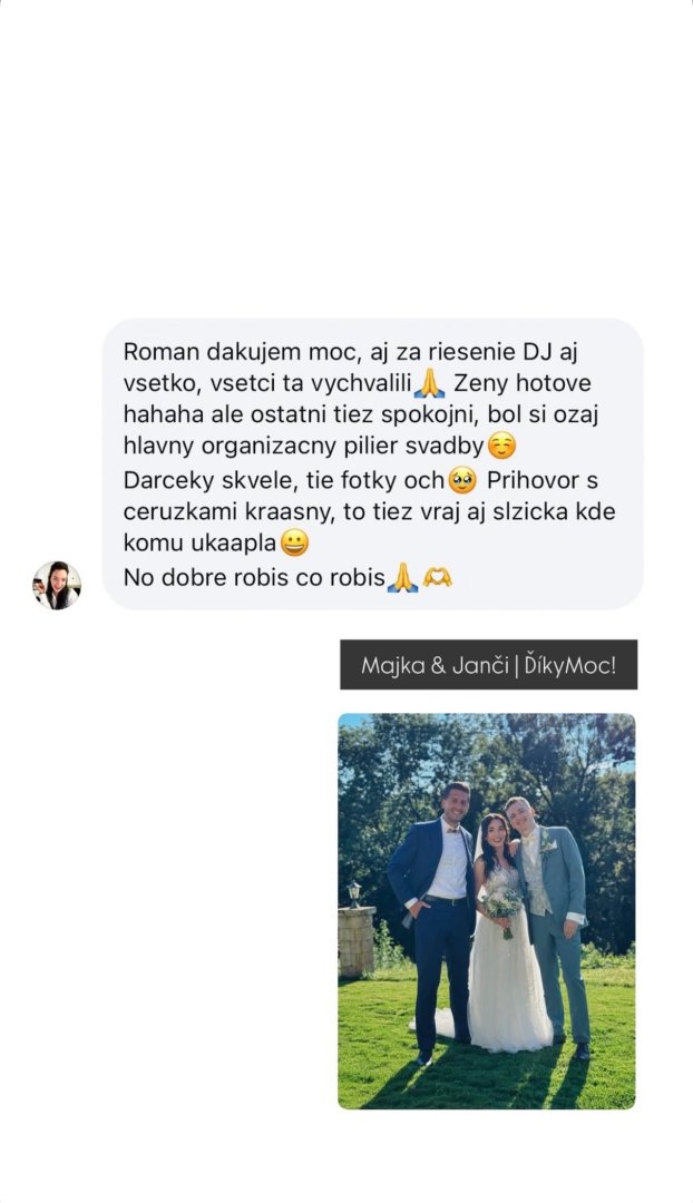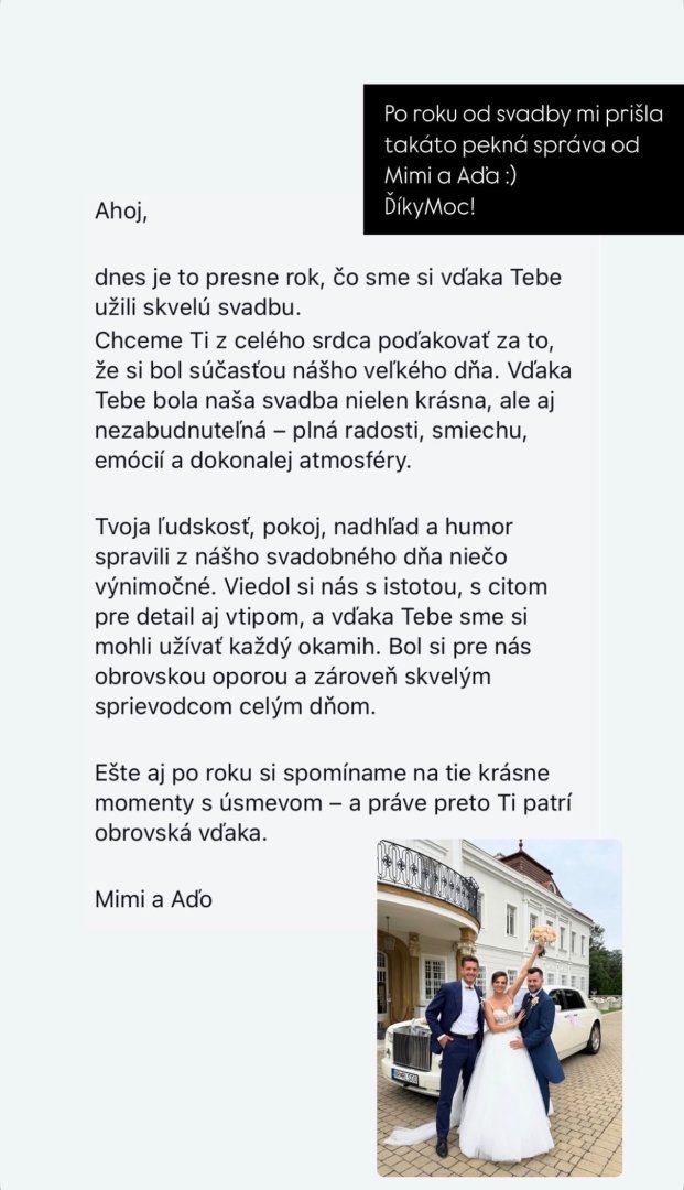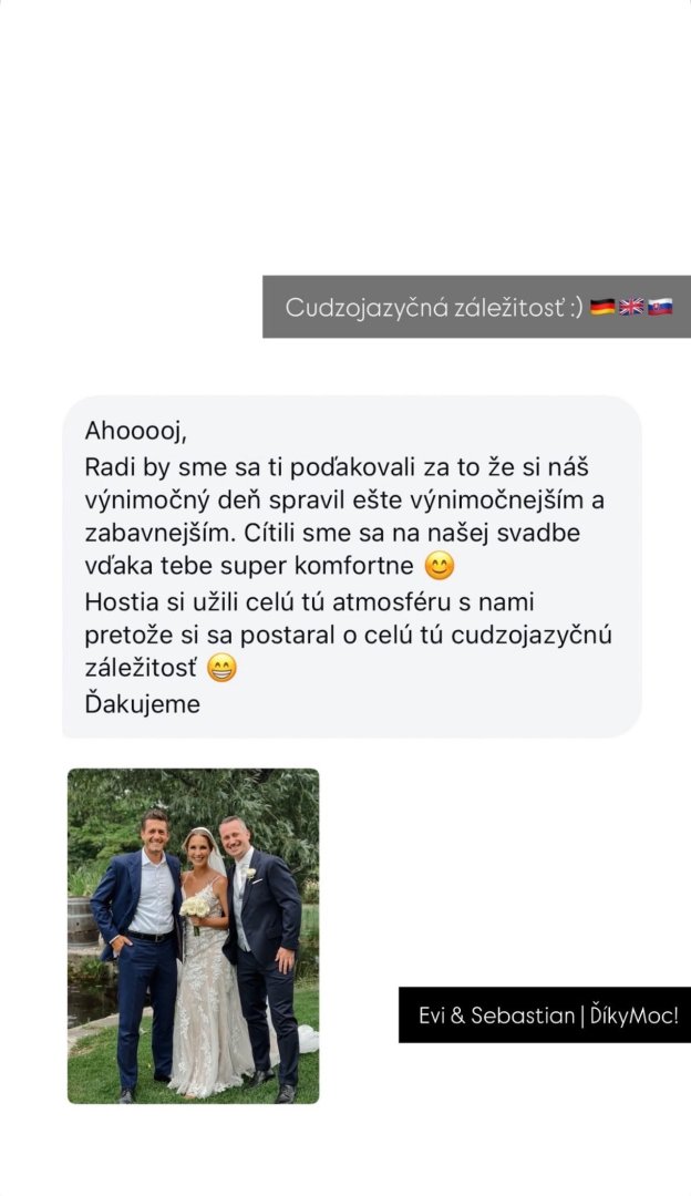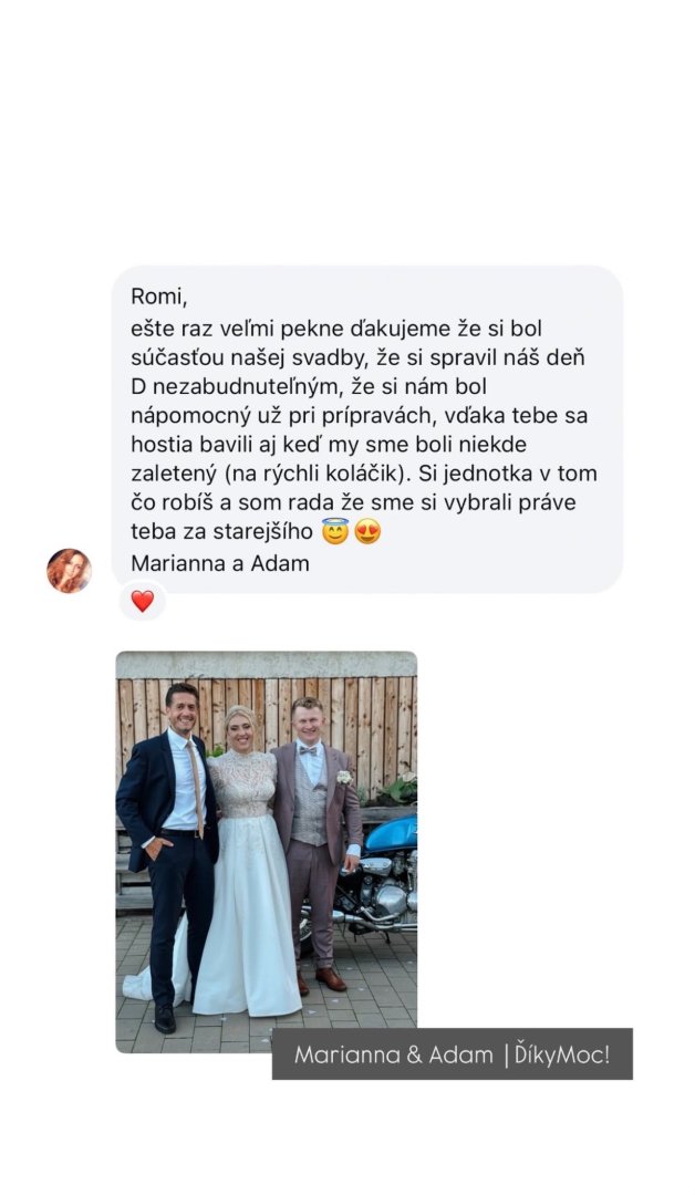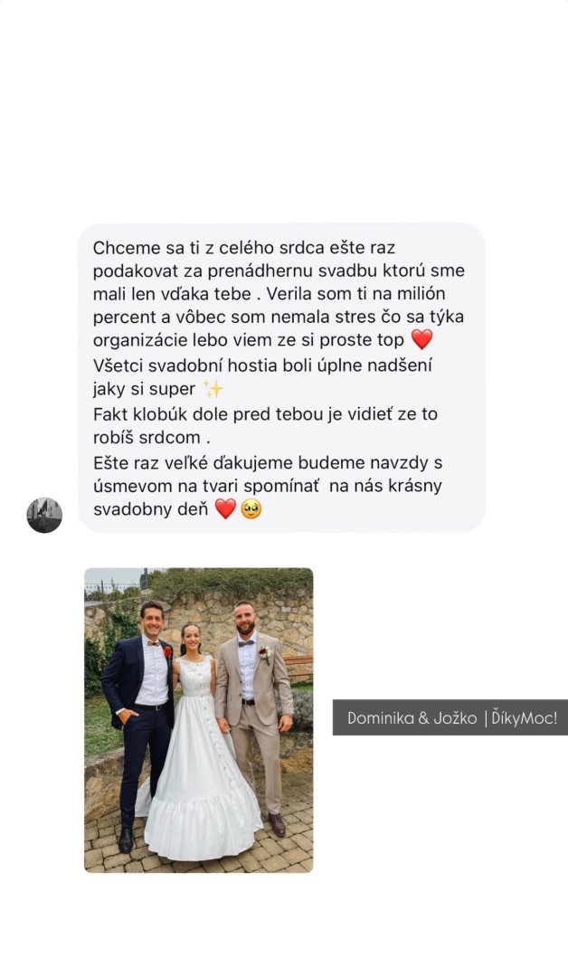 Mojim cieľom je, aby sa mladomanželia počas svadby mohli zabávať a venovať sa svojim hosťom.