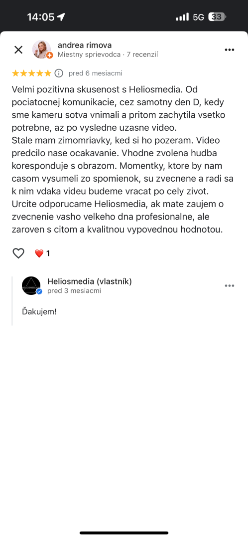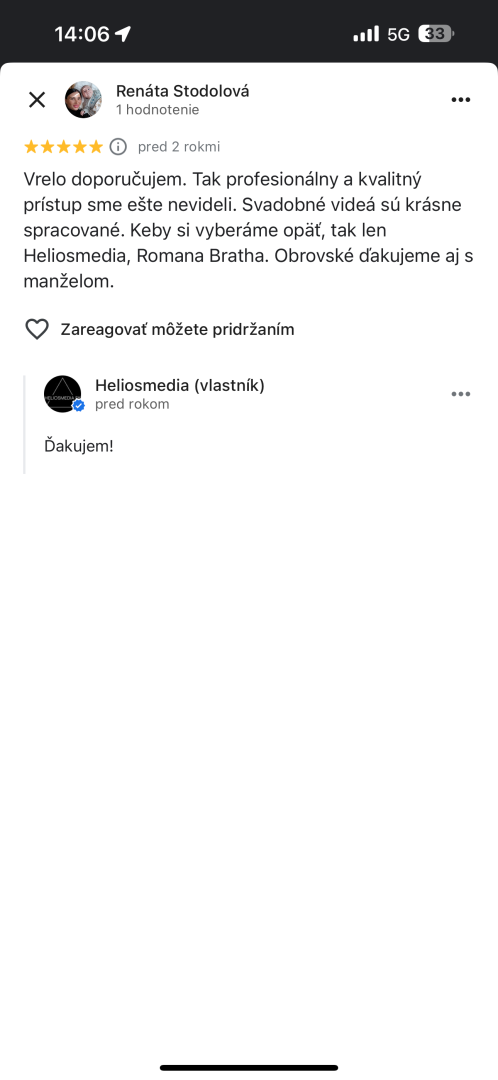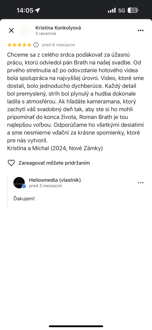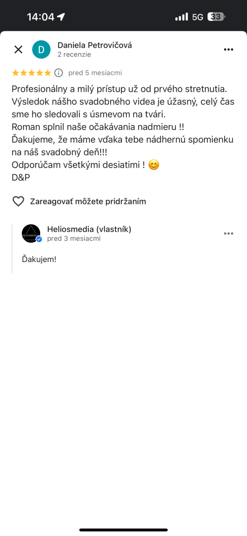 Za mnou stojí skúsenosť, kreativita a profesionalita – učím videotvorbu na strednej škole, mentorujem mladých talentov cez Európske programy Erazmus a do každého filmu vkladám cit a osobný prístup. Váš svadobný film nebude len video – bude to spomienka, ku ktorej sa budete vracať s úsmevom aj o roky.