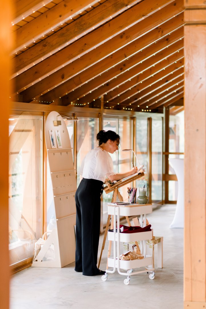 Maľovanie naživo priamo na Vašej svadbe je originálna alternatíva k fotobúdke.