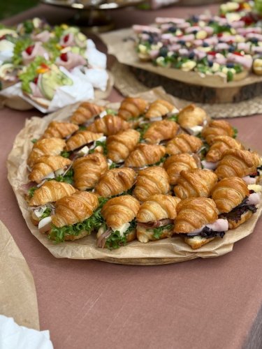 Slaný bar je ideálnym doplnkom k svadobnému candy baru – ponúka lahodné slané drobnosti, ktoré potešia každého hosťa. Pripravujeme čerstvé croissanty, chrumkavé pagáčiky, syrové či šunkové variácie kanapiek či chlebíčkov a ďalšie dobroty podľa vašich predstáv. Dbáme na estetiku, chuť aj praktické servírovanie, aby slaný bar pôsobil harmonicky s celkovým štýlom vašej svadby.