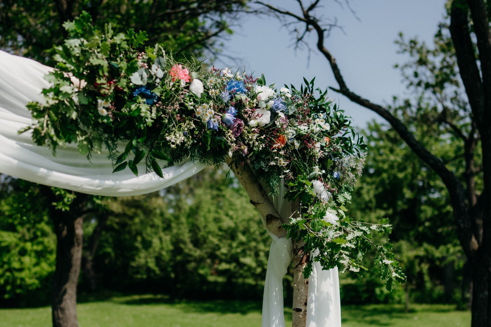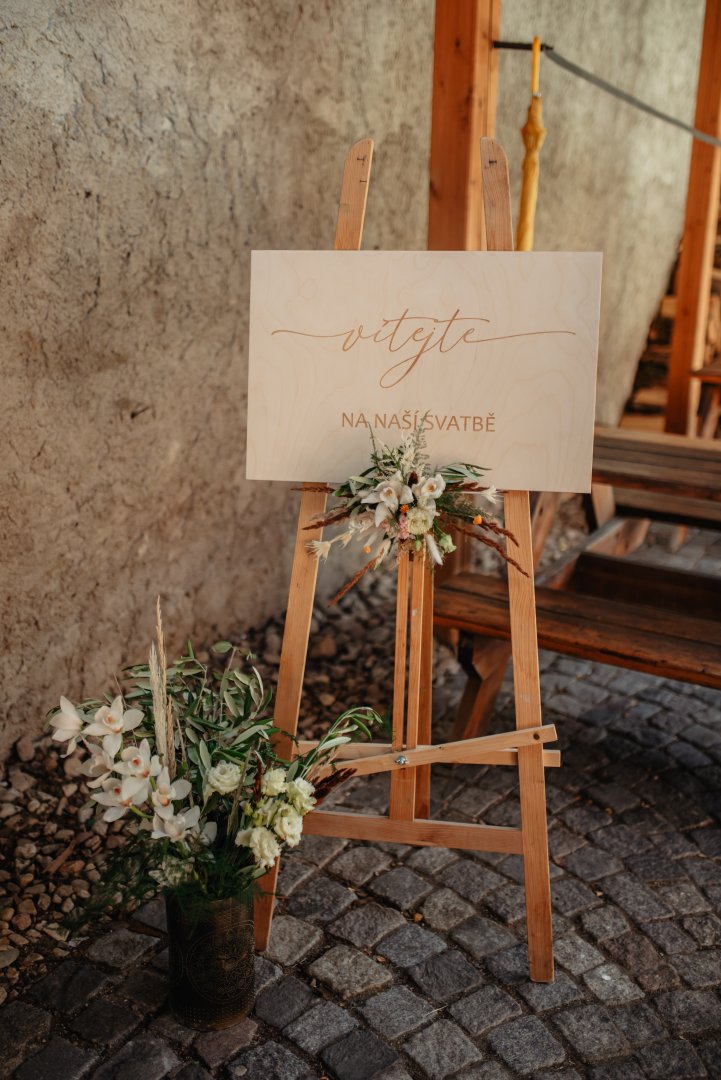V den svatby zajišťuji instalaci na místě – od svatební brány přes výzdobu stolů až po detaily pro fotografa nebo dekor dortu. Záleží mi na tom, aby vše bylo doladěné a fungovalo jako celek.