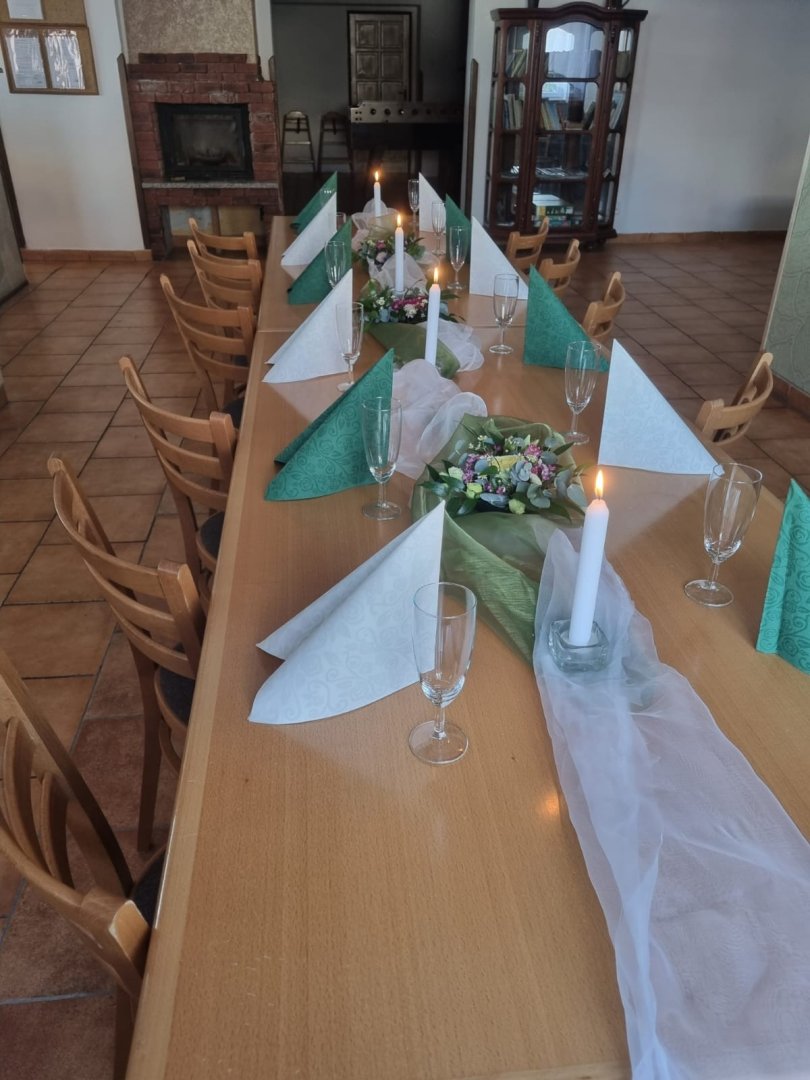 Levná svatba - uvařte a upečte si sami nebo si objednejte cattering. K dispozici bývalá restaurace pro 40 osob s přilehlou zastřešenou terasou pro 25 osob s krásným výhledem na jezero. Vybavená velkokuchyně včetně konvektomatu (s obsluhou pomůžeme, zaučíme). Ubytování pro 30 osob. Případná další ubytování do 5 min. pěšky. Můžeme zajistit dovoz nápojů za velkoobchodní ceny, dovoz květin, floristku, kosmetičku - vizážistku. Kolem objektu vlastní velký pozemek s parkovištěm, hřištěm, dětským hřištěm. Klidná lokalita - sousedíme s lesem, loukou. Nabízíme maximální úsilí k vaší spokojenosti.