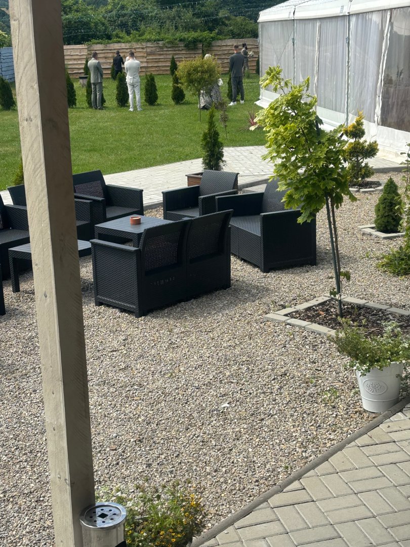Na záhrade je ratanové sedenie a v letných mesiacoch je úžasné sedieť pod holým nebom a pozerať na svadobčanov ako sa krásne zabávajú.