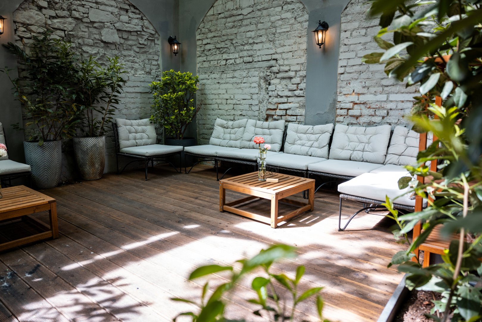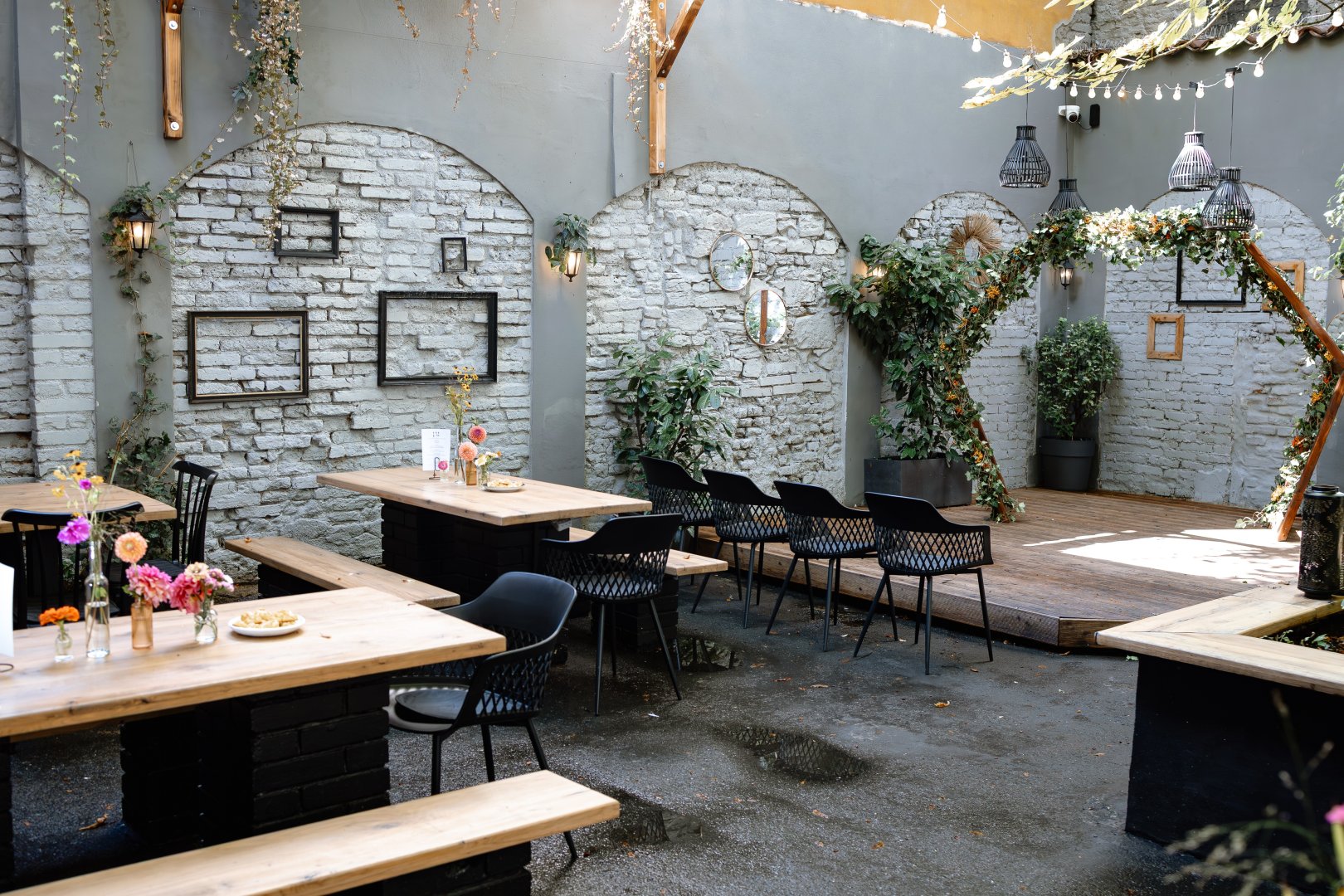 Zahrada disponuje kapacitou až 100 míst. K dispozici je i podium, které lze využít právě pro Vás obřad, pro DJ, nebo kapelu, jako zázemí pro dětský koutek, nebo třeba jen pro pohodlné lounge posezení v polštářích.